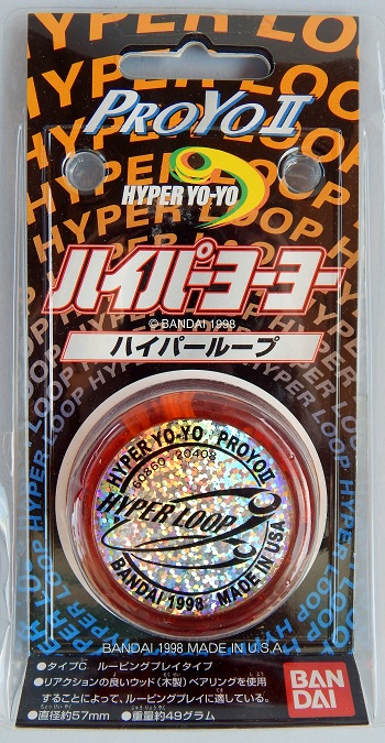 Another U.S. yo-yo sold under the Bandai name. Identical to the Pro Yo II sold in the U.S. but with different side caps. Not sure why the side cap is in English when the packaging is in Japanese. Red/Orange halves. Made in USA but sold in Japan.