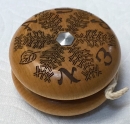 The World of Color was a very unusual item from the old Duncan company, and one of my personal favorites. The halves were poured and molded, so the mix of glitter and foil stars could be mixed into the translucent plastic. The effect was dazzling, and many colors were produced. The side logos were different on each side, and the clear plastic caps were printed in reverse on the inside to protect the logos from wear. The caps are concave inwards, giving the yo-yo a totally unique feel.