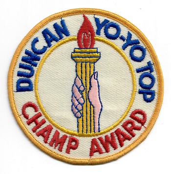 A beautifully made Duncan Yo-Yo Top "Champ Award" embroidered patch, style 1. It's unknown what a player had to accomplish to earn this patch.