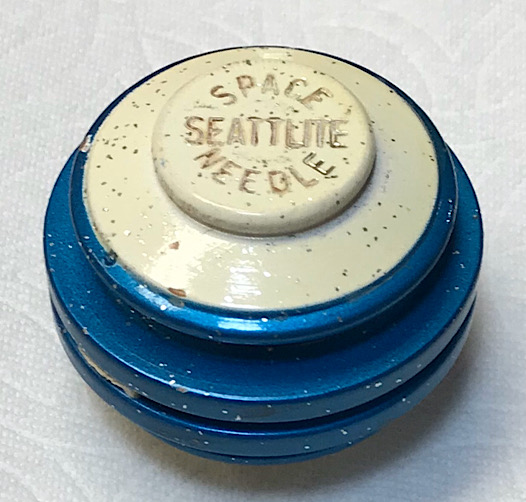 But this one took the odd shape to a new extreme. The halves of the Seattlite are shaped like the famous Space Needle tower in Seattle. Painted in two tone, the story is that these were sold only at the tower in Seattle. It was made exclusively for the tower during the 1964 World's Fair. Quantities unknown, but this is a very hard to find release from Duncan.
