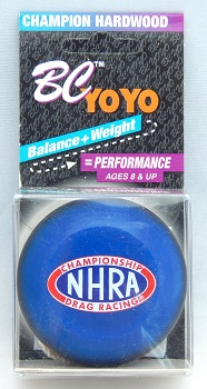 This basic Tournament style yo-yo -- in a similar vain to the Blackbird and Phantom -- was part of BC/What's Next's Extreme Motorsports Collectors Series. Introduced in 2000, What's Next, under its BC brand, introduced a line of skill toys that had the look and feel of NHRA, including specific products for individual championship drivers. Some of the skill toy products in this series were packaged in National Hot Rod Association-approved lifestyle graphics. This product was one of the exceptions; it came in regular BC YoYo packaging. This series of BC yo-yos was not very popular and is quite hard to find now. They were released at the end of the yo-yo boom, when dead, unresponsive yo-yos were replacing fixed axle yo-yos in popularity. These yo-yos may have also been sold exclusively at drag races, too. I don't recall them ever being sold in stores.