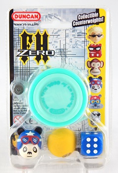 The original limited edition Duncan FreeHand Zero from about 2007-2011 known as the Yo-Yos are for Cool Kids -- Throw Duncan edition designed by the late Paul Escolar. Paul also chose the "mint" color combination for the yo-yo. Came with the Duncan Panda head (there were six different character counterweights you could collect), one yellow ball, and one blue dice.