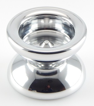 The 6061 aluminum Bull Dog was manufactured by Pro2Pro Machining Services of Chico, California in 2009. The pictures in this exhibit show the yo-yo as a prototype, exclusively. That is, the ball bearing axle and silicone had not even been installed by Chico Yo-Yo Company. I added the size C bearing in one picture to show what the prototype would have looked like with it installed.