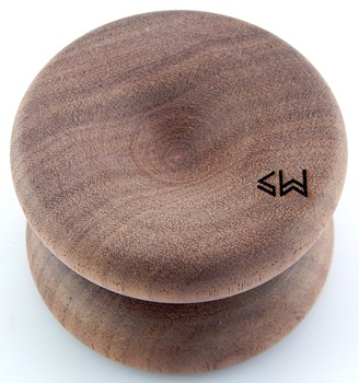 A one-piece Blood Cell yo-yo made out of walnut wood by Glen Kempster (aka Glenacius_K and Spinworthy Glen) of Australia.