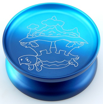This yo-yo features a wide flat cup with a tall rim, reflecting the flatness of the planet we live on, surrounded by the great ice wall. You know, the one topped with hordes of slavering Turducken keeping humanity from discovering the truth of what lies beneath. Or something like that."