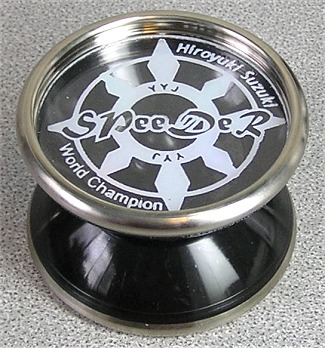 This is a Signature Model from Hiroyuki Suzuki, the 2003 Japan National Champion. It features the response system that first appeared in the prototype Matrixx. One side of the yo-yo features an O-Ring, the other a Starburst. This was the first YoYoJam production model to included this response system. Take apart design, bearing axle, adjustable gap, and weight rings for long spins. And of course the well known composite plastic to metal weight ring body design.
