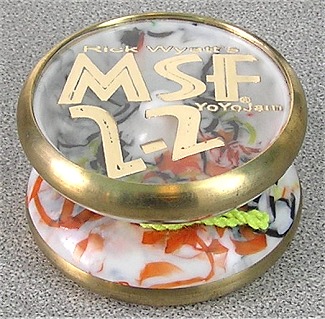 The MSF 2.2 was a model based on the original Mega SpinFaktor from YoYoJam, and like the original, it was also a signature model of Rick Wyatt. This one was made for one reason, to break the longest spin record of the time. The record required a production model be used. 100 of these were released, and no two are alike because of the marbling in the plastic.