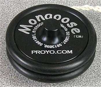 The Mongoose was Playmaxx's mini yo-yo, with a plan. Released as a mini, with rubber O-Rings for rim weighting, it was designed to be the hub system for a set of shells that would snap onto the hub. These never materialized, as the popularity of yo-yos died down right as these were released, and Playmaxx was later purchased by Duncan.