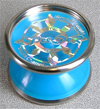 This is a Signature Model from Hiroyuki Suzuki, the 2003 Japan National Champion. It features the response system that first appeared in the prototype Matrixx. One side of the yo-yo features an O-Ring, the other a Starburst. This was the first YoYoJam production model to included this response system. Take apart design, bearing axle, adjustable gap, and weight rings for long spins. And of course the well known composite plastic to metal weight ring body design.