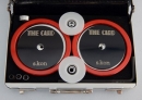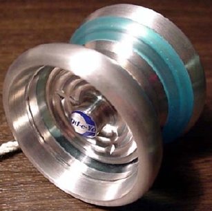 Pictured in this exhibit is a modified yoyo created by Frank Difeo, owner of Dif-e-Yo yo-yos. The idea being inspired by the Dif-Moves, Paul came to Frank Difeo with the idea to merge a Dif-e-Yo Zzzip-fly's hubs with YoyoJam’s Translucent Blue Hitman. Once this was done, Frank Difeo recessed the pads and satin finished the hitmans rings. The result was this incredible mod, which is owned by Paul Zografos.