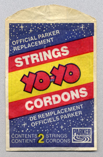 Parker Brothers of Concord, Ontario bought National Yo-Yo Limited in 1978. The venerable National Yo-Yo Limited horizontal string pack design was replaced with a Parker Brothers-branded vertical string pack. However, the instructions on the back of this pack design remained the same as on its three other "string pack ancestors."