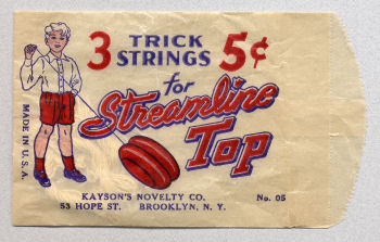 An early string pack, made by Kayson's Novelty Co., 53 Hope St., Brooklyn, N.Y.