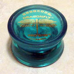 This is a Dragonfly yo-yo made in 1990 by the Playmaxx yo-yo company. The Dragonfly is a modified butterfly configured fixed axle yo-yo that was made in Mexico. If anyone has more detailed information on this subject please email me so I can update this.