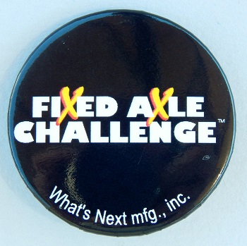 This pin, manufactured by What's Next, went along with the Fixed Axle Challenge sheet, also seen in this museum.