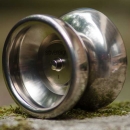 A transaxle roller-bearing (aka ballbearing) system. Side caps are black with silver logo. This model continues to be a popular yo-yo used by players doing looping tricks--known as 2A play--today.
