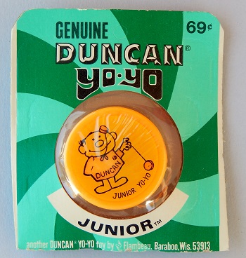 Originally sold for 69¢. This yo-yo is from the very early 1970s. Sort of a miniature, skinny, butterfly. Has a sticker on the side of the yo-yo (instead of the hot stamp like on most Duncan's from this period) depicting the little Duncan yo-yo guy.