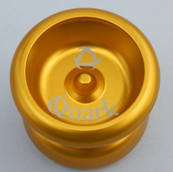 String Theory's "Quark" is an aluminum mini yo-yo at 50 mm diameter. Excellent quality and finish. Uses "Theory Pads" for the response, but since String Theory is no longer in business, you could substitute One Drop's "Flow Groove Pads" instead. The engine is a high performance (read: long spinning) size C flat cut Terrapin X ball bearing. The yo-yo was first released September 22, 2010.