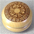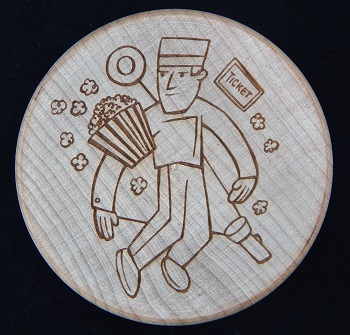 YoYoFactory's Legend Wing is a classic, one-piece wooden yo-yo with a traditional wing--or "butterfly"--profile. The yo-yo is cut from 100% Canadian Maple kiln dried baseball bat blanks and laser engraved with a graphic on one side. The overall yo-yo was not finished with any stain or laquer but could easily accept both. At the time of release, there were less than 12 Movie Reel versions fully painted and made available. And, just one natural, unpainted version was made available (the one in this exhibit). Uses an all-cotton string. Made in the USA