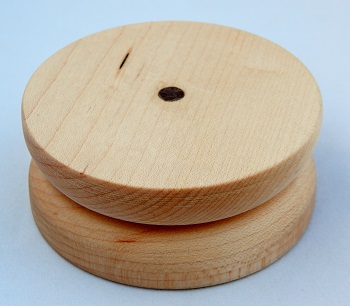 "Maple body with walnut axle. This big guy [71mm diameter] likes to take things nice and slow. A long spinning, relaxed throw capable of longer tricks and combos. Experience with fixed axle throws is recommended!"