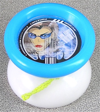 This is YoYoJam's all plastic yo-yo shaped like the popular Hitman. Concave shaped, Bearing axle, adjustable gap, take apart design, large diameter bearing, and double YoRing response system.