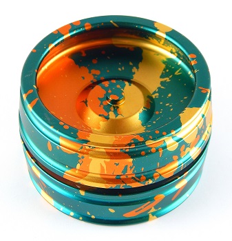 The Dumpster Fire is an aluminum design from Rain City Skills out of Vancouver, British Columbia. Yo-yo used a size C flat ball bearing axle that was heavily lubricated for responsive play out-of-the-box. You could install a half-spec size C bearing (and a shorter axle) to make the string gap narrower, if desired.