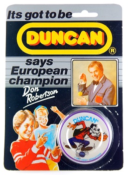 Don Robertson was a European Yo-Yo champion around 1972 who first worked for Lumar (a European yo-yo maker), along with Art Pickles, a very popular yo-yo demonstrator from Britain. He then worked for Duncan Yo-Yo, also as a demonstrator. Watch Don Robertson demonstrating his yo-yo skills in front of an audience in 1990.