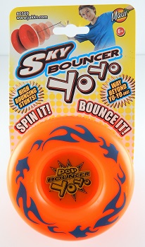 Sky Bouncer YoYo took the classic yo-yo and introduced a bouncing design that makes yo-yoing even more fun. It's a combination ball and yo-yo. Tricks include the Double Helix, Cyclone, The Hammer. Uses the high bounce of a ball combined with traditional yo-yo play.