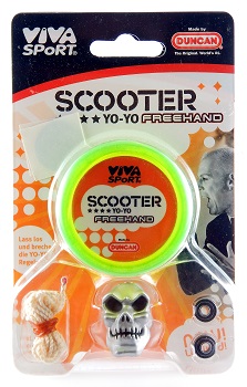 The Duncan Freehand 2 - Scooter edition in translucent yellow. This Freehand was released exclusively by VIVA SPoRT in Germany around 2010 and sold online by http://www.ideeundspiel.com/de/. The packaging featured the German music band Scooter. See also Scooter's official website (accessed November 12, 2023).