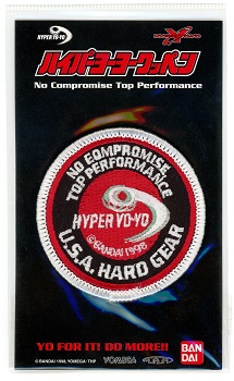 Made by the Apparel Division of Bandai Co. Ltd. in 1998, the four-colored U.S.A. Hard Gear patch showcased one of more than 20 different Hyper Yo-Yo-themed iron-on patches that were sold at Bandai trick certification centers inside retail stores. It's possible that these patches were also used as prizes in yo-yo contests. Sometimes the patch highlighted a particular yo-yo model that was licensed by Bandai from either Yomega or Playmaxx of the U.S.A.