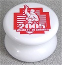 The Glow Tormentor looping yo-yo made by Ministry of Chaos based out of the United Kingdom and distributed by H. Grossman Ltd. out of Glasgow, Scotland. The Glow Tormentor yo-yo was released in 2004 and came in standard glow, orange glow (seen in this exhibit), and blue glow versions. It featured a starburst response system, brass spacers, and a size K ball bearing axle. Also, came with one extra string. The body halves glowed in the dark but the side caps did not.
