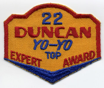 One of my most favorite patches, this award patch likely came out in the late 1940s or early 1950s. The player had to complete 22 yo-yo tricks, but that list is unknown. I'm also not sure how these patches fit in with the large, dated shield patchs. I would love to find the lower numbered patches that accompanied this one, if such patches exist.