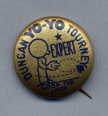 Duncan Yo-Yo Tourney Loop the Loop Expert award pinback. This award appears to be for one-handed looping.