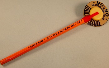 Another yo-yo topped pencil but this version is branded "'Yo-Yo' Donald F. Duncan, Inc." Pencil was actually manufactured by Hassenfeld brothers.