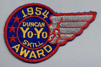 Made for years 1949 to 1955, Duncan Skill award single-wing patches, like the one in this exhibit, were more common than double-wing patches. Double-wing--or Expert--patches were the next step up for a player to earn. And, like so many Duncan patches, these winged varieties came in several different color combinations.
