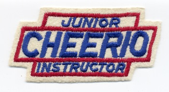 This version 2 instructor felt patch likely came out in the early to late 1950s. It was typically sewn onto an award sweater vest as seen in this photograph of three 99 Cheerio champions, or onto a Cheerio-branded cap similar to the one seen in this exhibit.