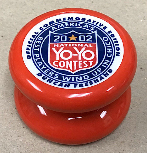A custom design FreeHand 2, made to promote the 2002 National Yo-Yo Contest in Chico, CA. It has been held at the National Yo-Yo Museum for many years. This logo has been used many times to promote the event. The same logo appears on both sides.