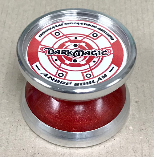 The Dark Magic is the signature model of Andre Boulay, and a follow up of the popular Hitman from YoYoJam. Larger than the Hitman, the Dark Magic was designed to handle Andre's unique thumb grinds. Composite construction with YoYoJam's plastic with metal weight ring design. Adjustable gap, large diameter bearing, and hybrid response system, with Yo-Ring on one half and starburst on the other.