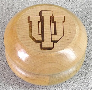 An example of Hummingbird's advertising yo-yos made to promote the local team. This yo-yo was made to advertise the University of Indiana Hoosiers.