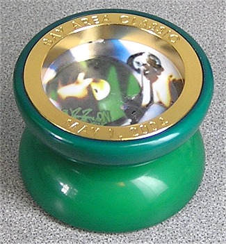 The Remix was the first Buzz-On model to feature their SPR axle system with a medium sized bearing. Like most of the Element X line, colors varied widely. Very many combinations of body color, weight ring color, and logo color. Pictured here is a Dark Green Remix with Gold Rings. You might notice the Rings were engraved for the 2004 Bay Area Classic, and used on a standard Remix over a year later.