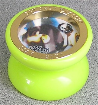 The Remix was the first Buzz-On model to feature their SPR axle system with a medium sized bearing. Like most of the Element X line, colors varied widely. Very many combinations of body color, weight ring color, and logo color. Pictured here is a Lime Green Remix with Gold Rings. You might notice the Rings were engraved for the 2004 Bay Area Classic, and used on a standard Remix over a year later.