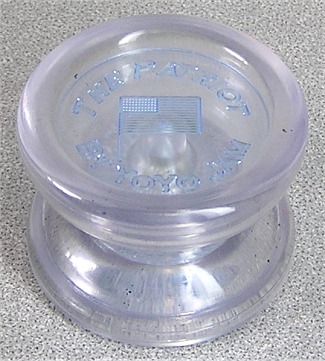 A successful lower end model, with a move to a larger diameter bearing. This one came mainly in "patriotic" Red, White, and Blue. This is a more unusual color, made from Clear Plastic. Notice the old logo, from the original release of the Patriot.