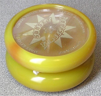The Sunset Trajectory is a signature model of both Dave Geigle and Bill De Boisblanc. Both collaborated in the design, and it became the standard looper in the YoYoJam lineup. Take apart design, bearing axle, and double Yo-Ring response.