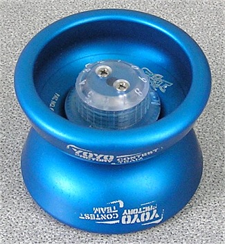 The 401k represented another major innovation in yo-yo technology, as we've come to expect from the Van Dan Elzens. Hans and his team at YoYoFactory created the first yo-yo with an adjustable response system. Shuttles around the bearing move in or out, depending on how you adjust the knob on the outside of the yo-yo. So response can be increased or reduced, depending on how you advance or retract the shuttles.