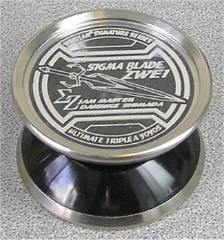 The Sigma Blade Zwei was a re-design of the original Sigma Blade, both signature models of Daisuke Shimada. Designed to be the "Ultimate Triple A" model, it featured YoYoJams composite body construction with weight rings meant to maximize weight distribution. A very tight design in a slimline concave, with super crisp metallic logos and stylized weight rings.