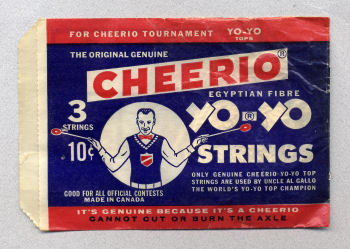 "Only genuine Cheerio yo-yo top strings are used by Uncle Al Gallo, the world's yo-yo top champion". Uncle Al is the gentleman pictured on the pack.