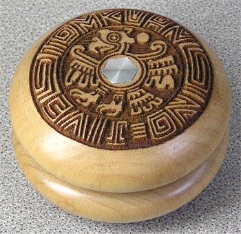 Pictured here is one of standard Quatle Mandalas with the heavy lasering. Notice how the deeper engraving makes it look more antiqued than the lightly engraved Quatle.