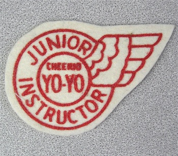 This is a very simple printed patch. The half wing design and text was printed on thick white felt. Wing patches are popular with collectors, half wings included. The term "yo-yo" is on the patch, indicating a date around 1960 and most likely from Canada.