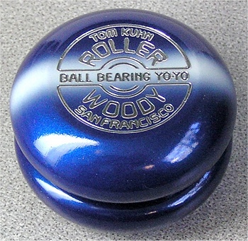 The Sleep Machine, and Roller Woody, were the first wooden bearing models from Tom Kuhn. The Sleep Machine was the most popular because of its concave shape. Bearing axle and adjustable gap, but the yo-yo had to be disassembled to adjust the gap set screws.