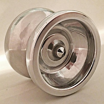 | This was the first Peak ever made, the predecessor of all other Peaks, as it was the very first of the 6 prototype Peaks to ever be machined, and for that matter the very first yoyo to ever be created by Caribou Lodge YoYo Works. The prototype Peaks however, didn’t play quite right, and Chris with dremel in hand, immediately modified this Prototype Peak #0000 by widening the response groove on one half, which made a huge difference. Even though up to 10 months of design work had been done before the prototypes were machined, the width of the response groove was simply too narrow affecting playability. At the time, it was the industry standard width, which would allow for Dif-pads. The modification by Chris was quite a blessing and the first act of CLYW pioneering history, as he decided to take action with modifying the narrow response groove, and was forced to go wide. This was the direction the industry was about to go in… the "flow groove". So many models of yoyos transitioned from response pad to flow groove in 2008/2009, but because of this quick action by Chris, the Peak got to skip that transition all together. CLYW was a whole 2 years ahead of the game, and may have been a factor in other companies deciding to transition from response pad to flow groove. After widening one half of prototype Peak #0000 with a dremel and fixing the issue, the other 5 prototypes went back to the machine shop to have the response groove widened. Chris did not modify the other half of proto #0000, nor did he take that half back to the machine shop, so both halves of this proto #0000 are unique and show not only where the response groove was modified and widened by hand, but also allows us to see an original half with the more narrow Dif-pad sized response groove as it was originally created. |  |