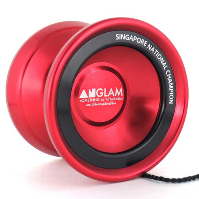 The Hiroyuki Suzuki brand "sOMEThING" produced a signature yo-yo for professional player, Christopher Chia. The Anglam Ver. CC was based on the original Anglam, but the specs were changed to fit Christopher Chia's own play preferences. The Anglam Ver. CC, like the original Anglam, is equipped with metal weight rings. It comes with 19mm slim pads and a Center Trac bearing. It is a great high end yo-yo offering stable, long spinning, and smooth play.